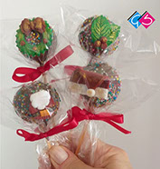 • Pirulito de chocolate ao leite ou branco com decoração 2D